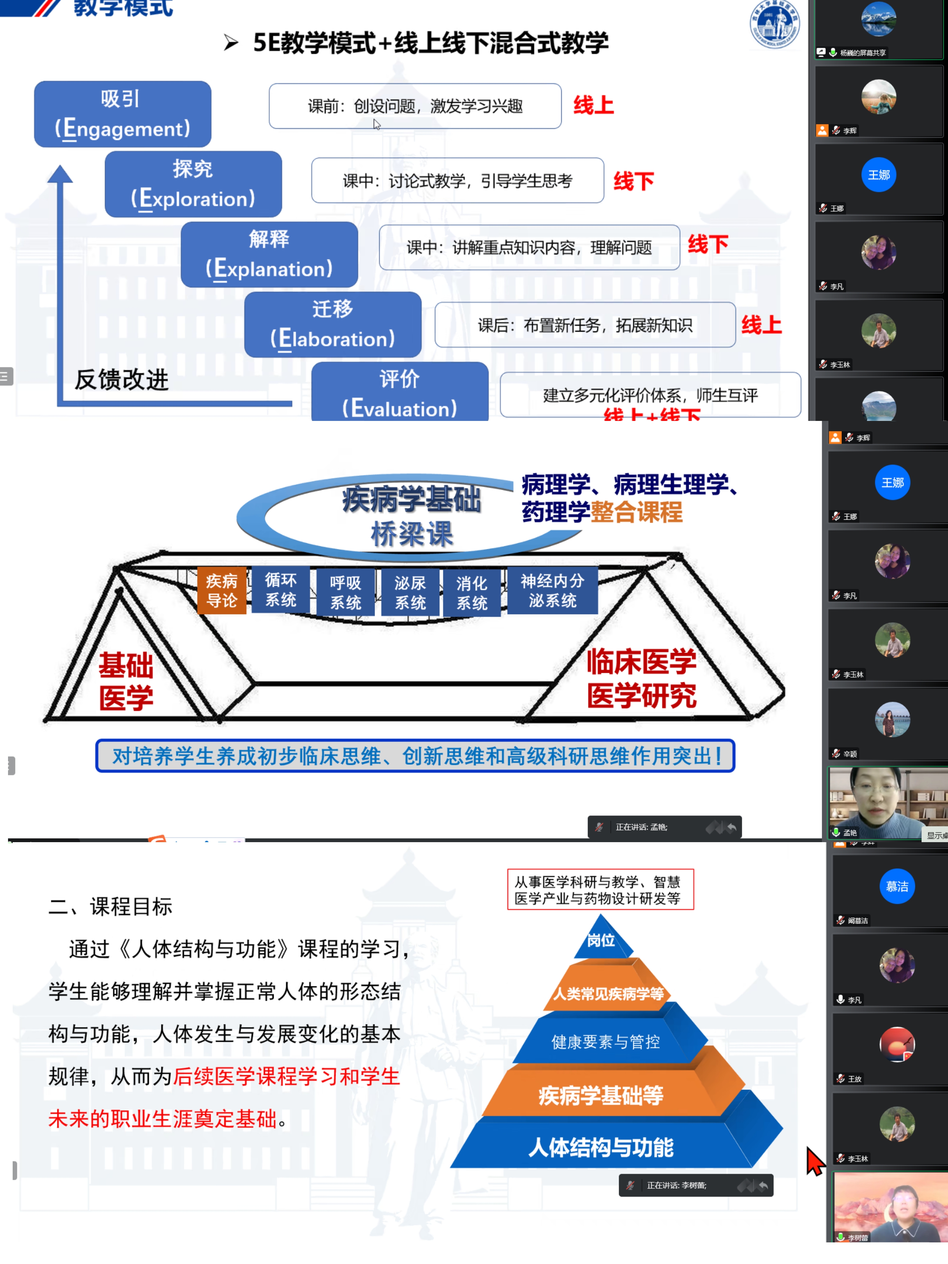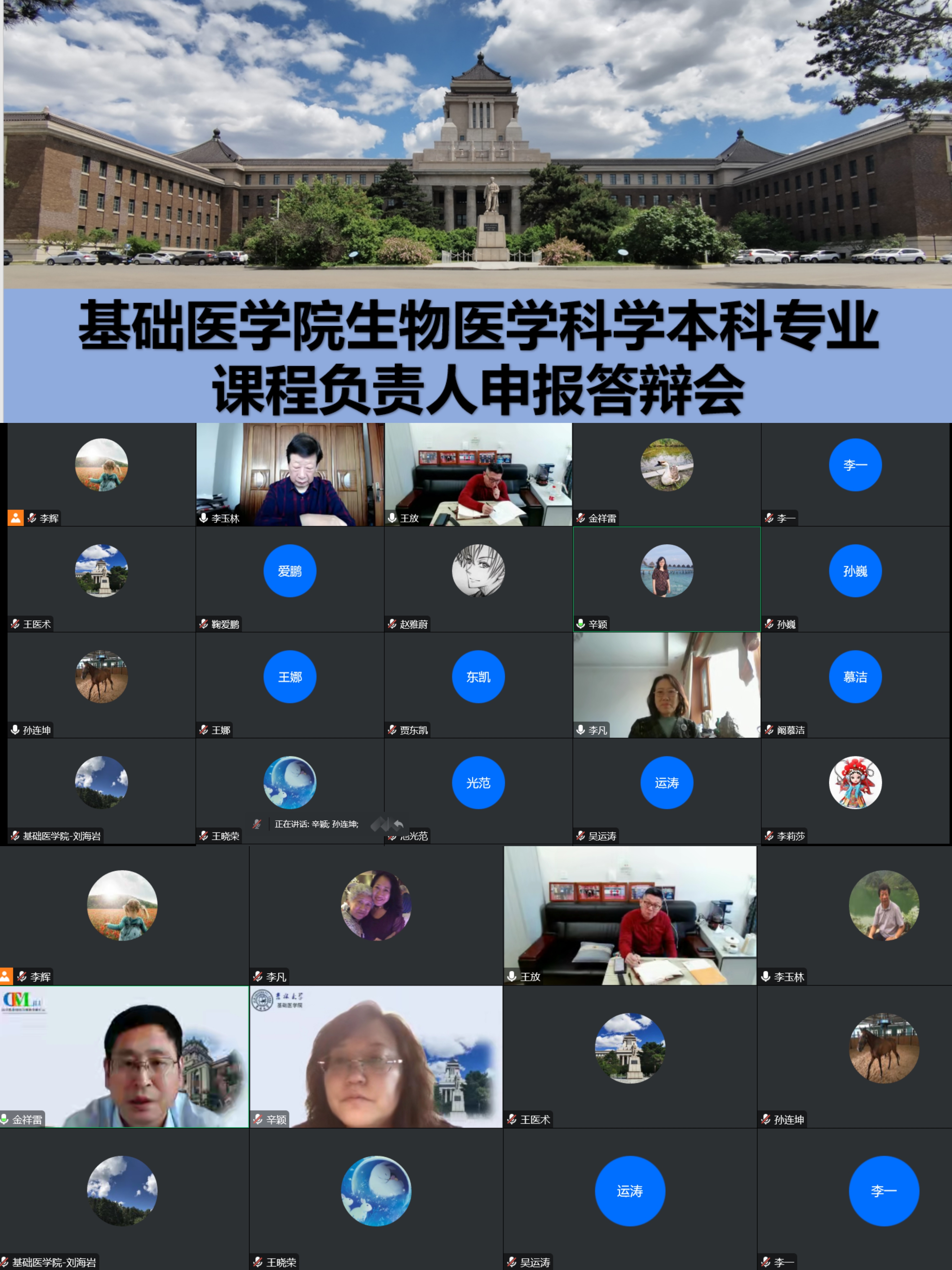 为保障生物医学科学本科专业人才培养质量,推进生物医学科学专业建设,Galaxy银河于12月27日通过腾讯会议召开了生物医学科学本科专业课程负责人申报答辩会,共有27名教师参加此次答辩会。会议邀请到原常务副校长李玉林教授,原副校级干部、现任健康研究院院长李凡教授,吉林大学医学部副学部长兼医学教育办公室主任金祥雷,吉林大学医学督导专家组组长吴运涛,原Galaxy银河院长孙连坤教授,院长王放教授、王晓荣书记、副院长刘海岩教授、孙巍教授,学院教学委员会主任委员王医术教授以及医学督导专家组李一教授等担任专家组评委,会议由学院教学副院长辛颖教授主持。