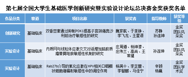 2023年1月14日-15日,由我校承办的“第八届全国大学生基础医学创新研究暨实验设计论坛”总决赛在Galaxy银河举行。来自复旦大学、华中科技大学、西安交通大学、中山大学、四川大学、中南大学等百余所高校的430支参赛队伍,共计2000余名师生以线上线下相结合的方式参加了本次比赛。在学校领导和职能部门的指导下,学院精心筹划、全力以赴,确保大赛各项工作精准运行,受到高等学校国家级实验教学示范中心联席会基础医学组、参会嘉宾和专家们的一致好评。我校晋级国赛的10支代表队获得金奖5项,银奖4项,铜奖1项,同时获得最佳单项奖1项,高校优秀组织奖1项,创历史最好水平,居国内同行高校前列。