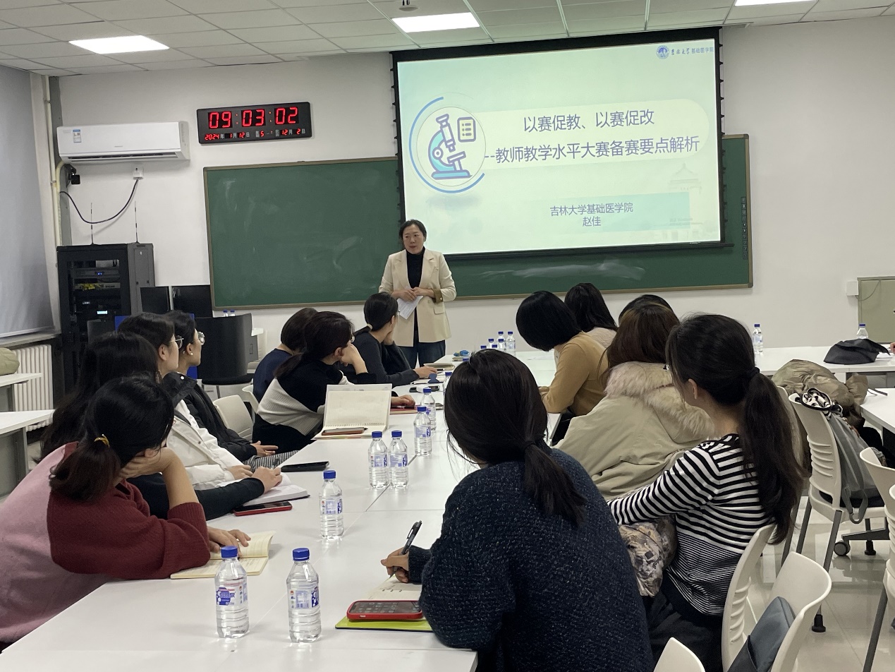 为做好学院青年教师教学水平大赛准备,提高青年教师教学能力和比赛水平, 1月12日上午学院邀请组织学与胚胎学系教师赵佳副教授开展第一期赛前培训活动,学院青年教师20余人参与培训,活动由教务办主任李辉主持。