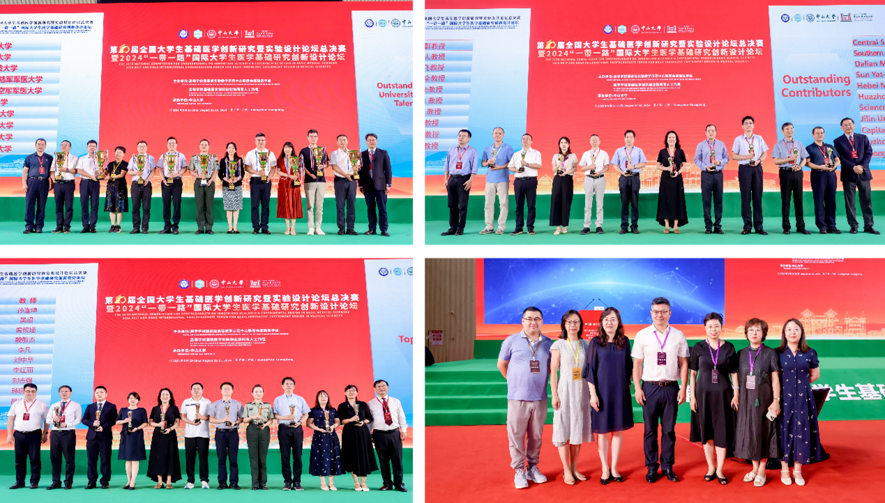 8月22日—25日,由高等学校国家级实验教学示范中心联席会基础医学组、高等学校基础医学创新创业协同育人工作组主办,中山大学承办的第十届全国大学生基础医学创新研究暨实验设计论坛总决赛暨2024“一带一路”国际大学生医学基础研究创新设计论坛在广州圆满落幕。历经校内初赛选拔、区赛复赛评比,我校进入全国总决赛的12支代表队经过激烈角逐,共获得金奖5项、银奖3项、铜奖4项、最佳团队合作奖2项、最佳风采奖1项、高校优秀组织奖1项,创造了历史最好成绩,得到了组委会及评审专家们的一致认可。