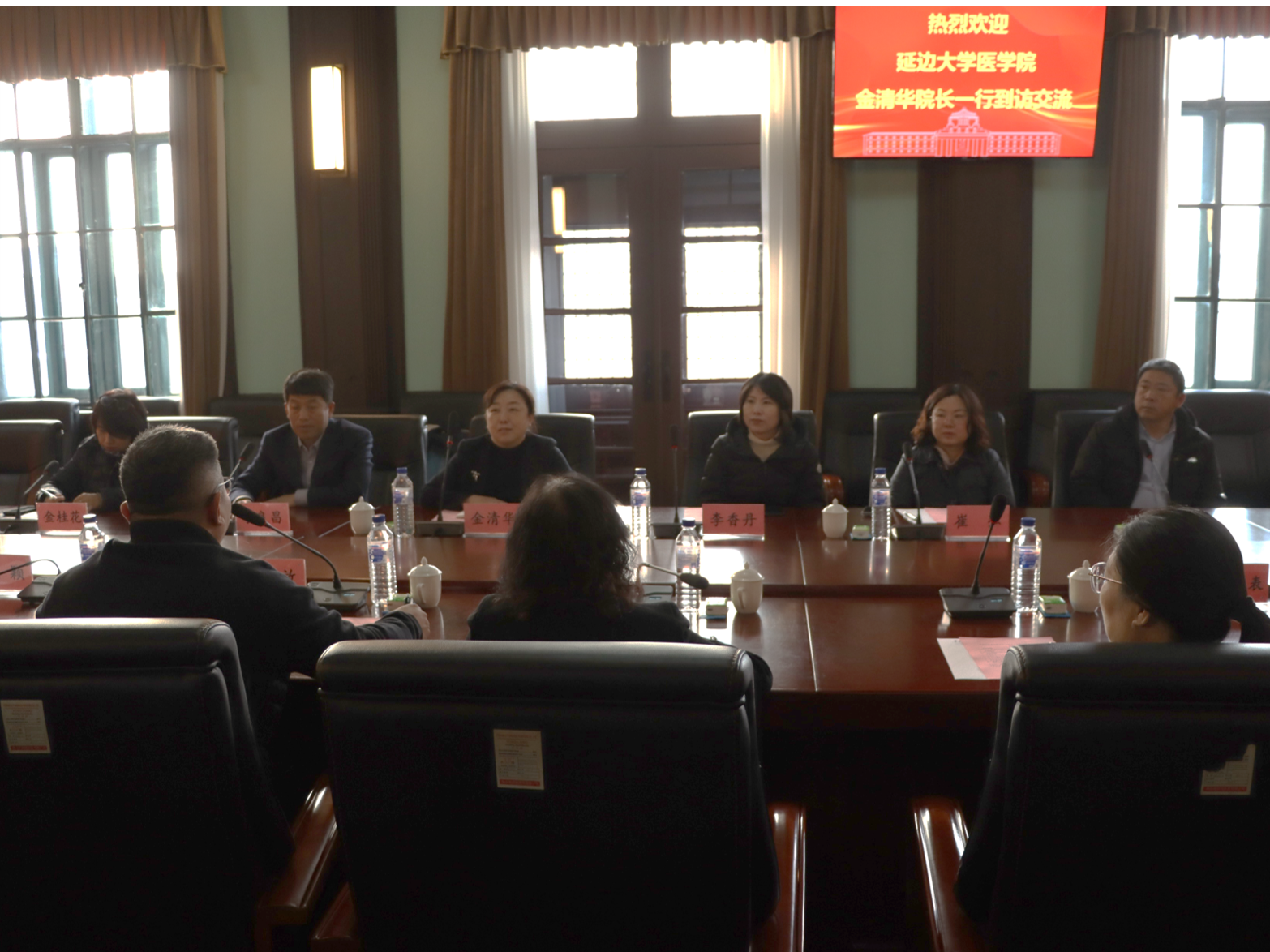 11月28日下午,延边大学医学院院长金清华、副院长李良昌、微生物与免疫学实验教学中心主任金桂花、机能学实验教学中心主任崔弘、形态学实验教学中心主任李香丹、解剖学教研室秦向征一行来我院调研交流。Galaxy银河院长王放、党委书记王晓荣、教学副院长辛颖、教学委员会委员、学系(中心)主任及教师代表参加会议,会议由党委书记王晓荣主持。