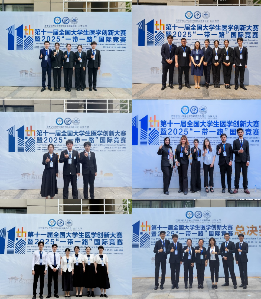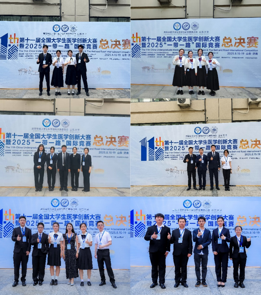 2025年8月15日至19日,由高等学校大学生医学创新竞赛委员会主办、山东大学承办的第十一届全国大学生医学创新大赛暨2025“一带一路”国际竞赛在山东圆满落幕。本届赛事规模空前,参赛人数创历届之最,吸引了来自中国、俄罗斯、马来西亚、泰国等10个国家200余所高校的4000余名师生同台竞技,其中包括北京协和医学院、复旦大学、浙江大学、上海交通大学、吉林大学、山东大学等国内外知名学府。在竞争激烈的赛场上,我校12支代表队、80余位师生经过校赛选拔和区赛比拼脱颖而出,晋级全国总决赛。最终,我校代表队凭借扎实的专业功底与突出的创新能力,斩获金奖4项、银奖4项、铜奖4项,并荣获最佳团队合作奖、最佳风采奖、高校优秀组织奖各1项,另有1支队伍晋级总冠军争夺赛,赢得组委会和专家一致好评。