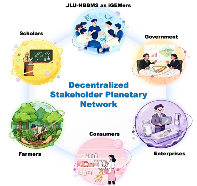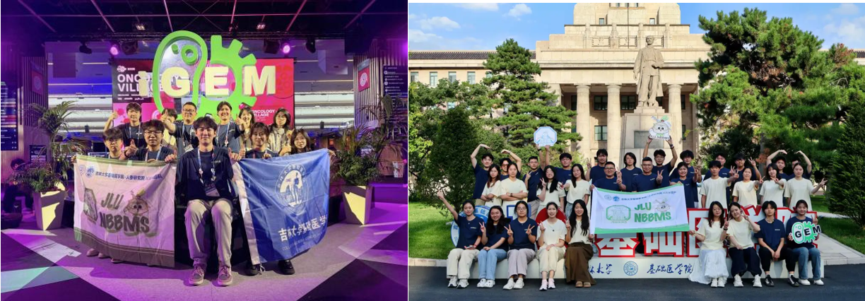 在本届大赛中,JLU-NBBMS团队在生物合成赛道(共47支队伍)和综合人类实践项目(共413支队伍)中分别跻身全球前四和全球前六,在综合人类实践方面,团队创新性地提出 "去中心化的利益相关者行星网络" 理念,将学者、企业、政府、消费者等多元主体纳入项目设计与推广体系,科研成果与社会需求有机结合路径,使科研创新真正服务于社会需求。