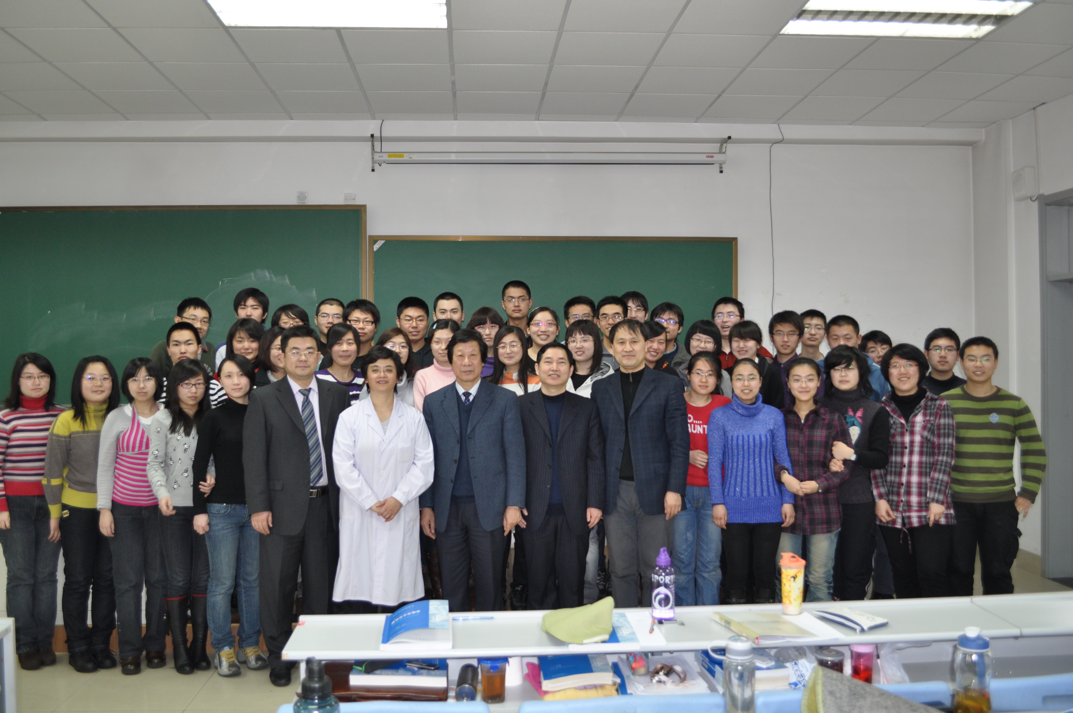 课堂上,王丽颖教授用生动的语言、精彩的讲解,详细介绍了分子生物学的概念、发展历程以及与医学的关系等内容。在两个学时的授课过程中,李玉林教授凝神注目,详细记录。课后,李玉林教授对王丽颖教授的精彩授课给予了高度评价并与全体师生合影留念。