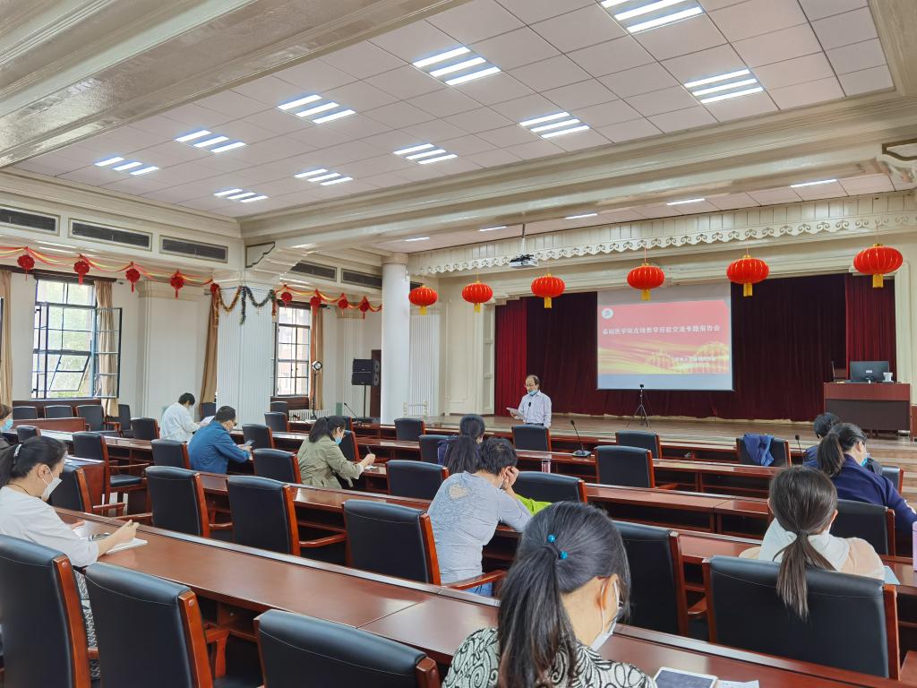 随后,二位教师结合在线教学开展情况,从课程定位、学情分析、在线教学形式、教学内容、教学效果与反馈等方面分享了在线教学经验,分析了教学过程中遇到的问题和采取的措施。病理学学系主任王医术教授分享了《病理学“三段式”线上教学模式的探索和策略》。病理学课程基于国家精品在线开放课程-人卫慕课《病理学》及吉大学堂在线《病理学》平台,采取“三段式”授课模式,即教师线上直播精讲、学生利用线上资源自主学习与测试、教师线上答疑、平台互动与总结,引导学生将基础知识运用于病理学知识的深化及案例的研判,培养学生的自主学习能力和临床思维。组织学与胚胎学学系主任刘佳梅教授分享了《同心协力,经“疫”求精》的线上组织学与胚胎学教学。融合线下教学的经验,在精心课程设计基础上,充分利用在线教学的优势,在保证知识传授、能力培养前提下,着力加强情感态度价值观教学内容,鼓励学生秉承医者仁心的家国情怀,努力增加职业道德感和社会责任感,传承白求恩精神。