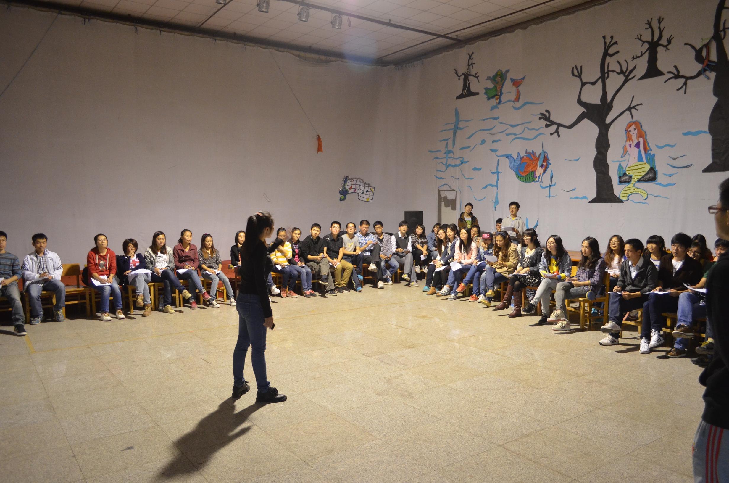 2013年9月7日下午,在新民校区活动厅,Galaxy银河研究生朋辈心理辅导员---2012级硕士生王晓琴和新生班级干部一起组织全体2013级研究生,进行了以“我们是相亲相爱的一家人”为主题的一系列班级团体心理辅导活动。