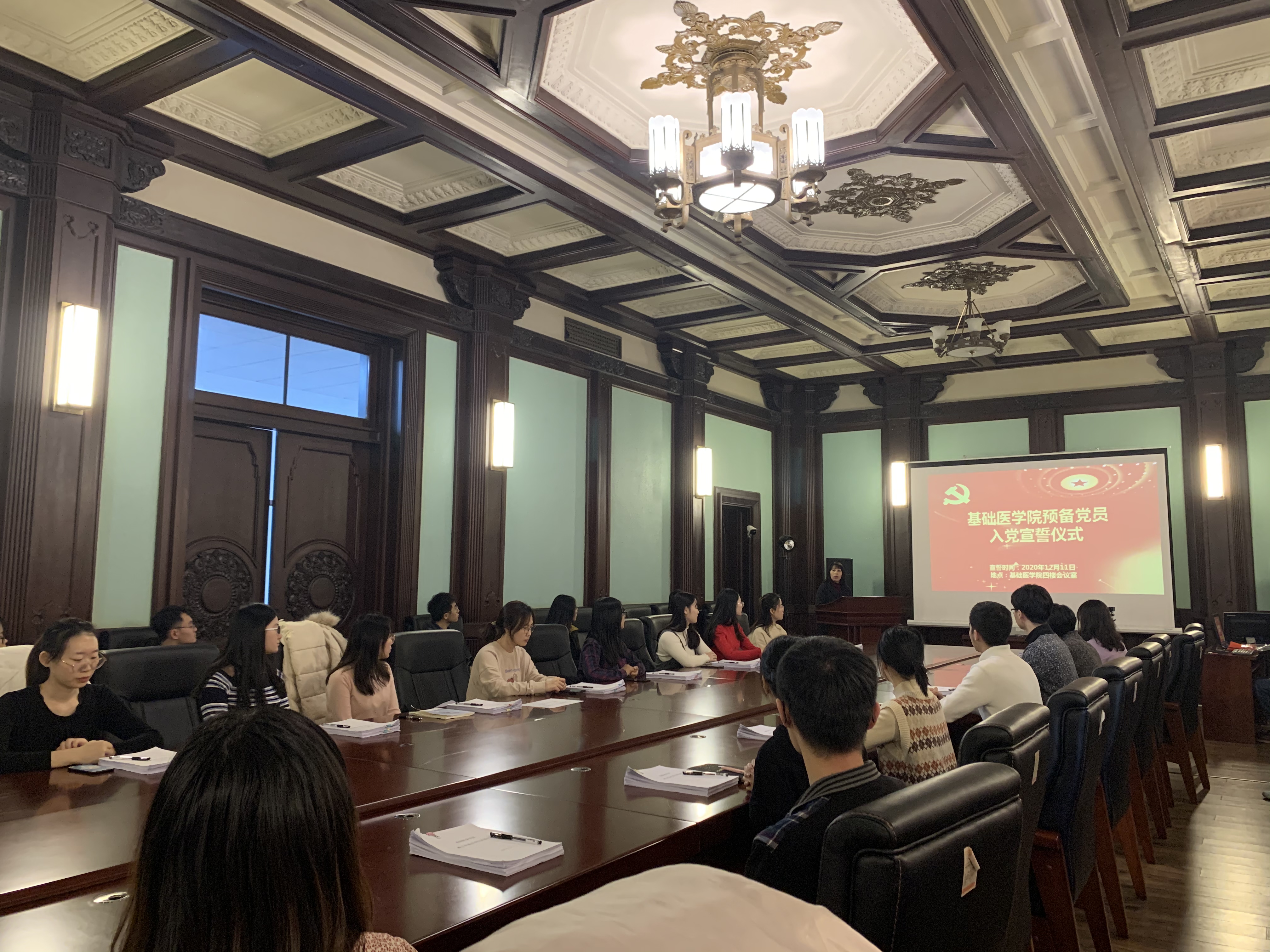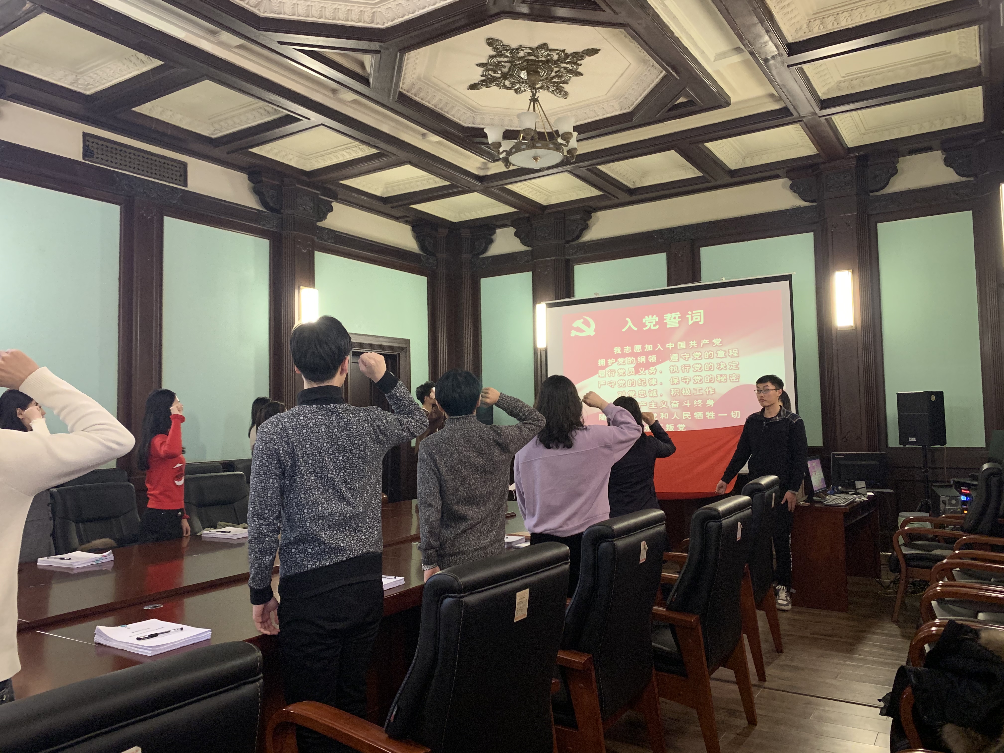 在庄严的《国际歌》后,会议正式拉开序幕。由李晓慧同志宣读了新党员名单。全体新党员在孟庆飞同志的带领下,面对党旗进行了庄严的入党誓词宣誓。同学们用饱满的热情、昂扬的斗志表达出作为共产党员的自豪感与使命感,抒发对党的忠诚的意志和信念。随后,董媛同志代表新党员发言,她代表全体新党员感谢党组织的培养,并表示一定会继续在党组织的培养和领导下,不断加强党性修养,以报国之志书写心中大我,始终把祖国需要放在首位,将个人追求融入到为党和人民的事业不懈奋斗中去。